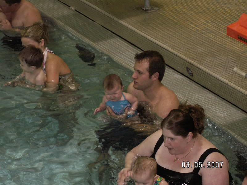 Elise started swimming lessons! She didn't really enjoy it the first day. She had just gotten her six month shots and hand't had a nap that day. Scott stuck it out the whole time, even with the screaming! After that first day, she loved it! Scott enjoys dunking her under the water (of course) and Elise loves playing with the water toys. She will be ready for Hawaii in no time!
