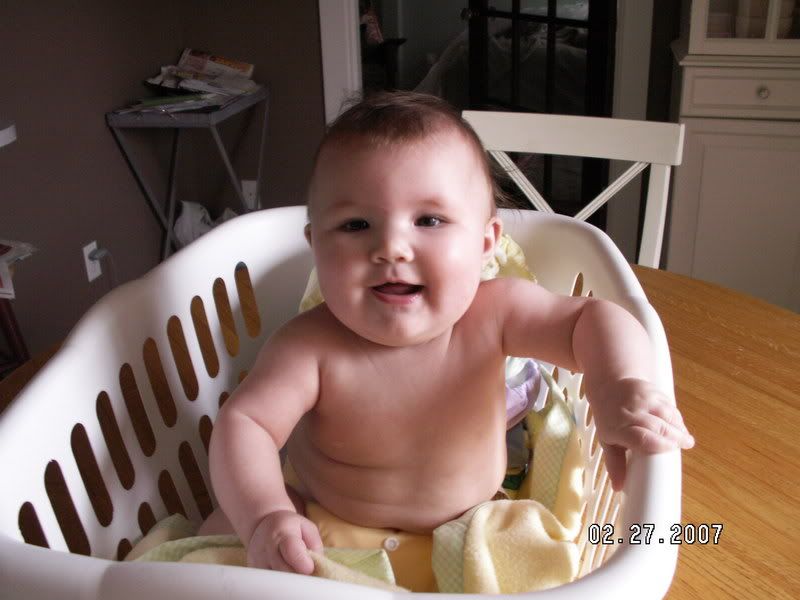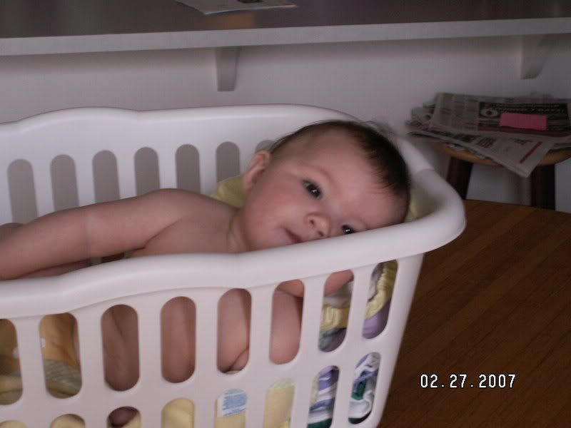 Elise's new favorite place to be is in the laundry basket!